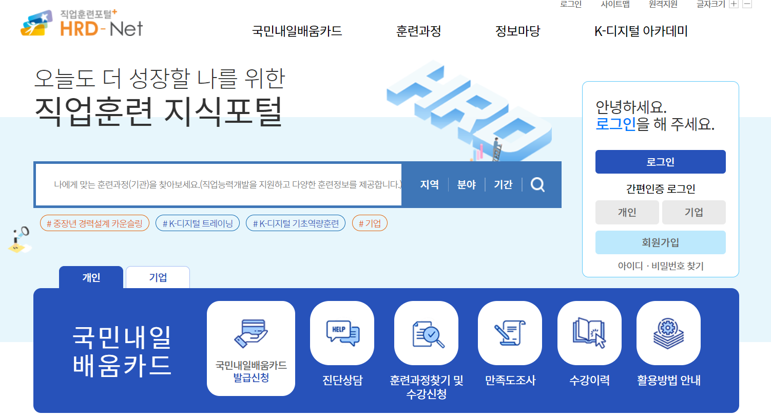 맘시터에 신청하시기 전 가장 먼저 해야 할 것은 내일 배움 카드 발급을 받아야 100%로 지원됩니다!